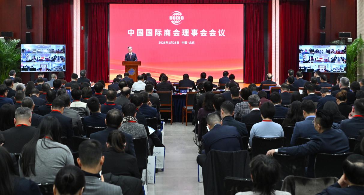 1月28日,2025年中国国际商会理事会会议在北京召开。中国贸促会会长、中国国际商会会长任鸿斌出席会议并讲话,副会长陈建安、李庆霜、李兴乾、聂文慧、刘健男出席会议。